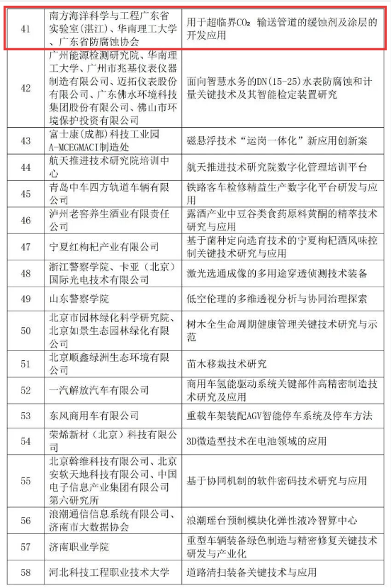 近日,中国职工技术协会公布了2025年职工技术创新成果奖名单,由南方海洋科学与工程广东省实验室(湛江)牵头,华南理工大学、广东省防腐蚀协会共同申报的《用于超临界CO2输送管道的缓蚀剂及涂层的开发应用》,经中国技协评审和审定,从多项创新成果中脱颖而出,最终荣获2025年职工技术创新成果特等奖。