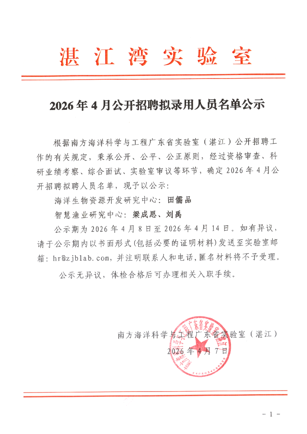 2026年4月公开招聘拟录用人员名单公示(第一批)