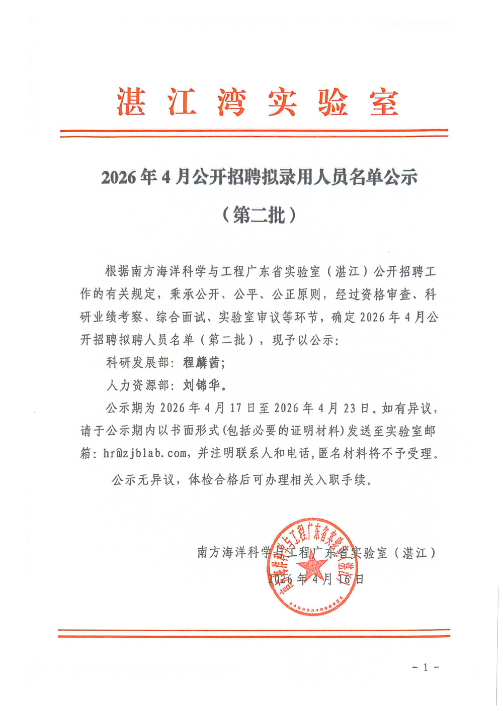 2026年4月公开招聘拟录用人员名单公示(第一批)